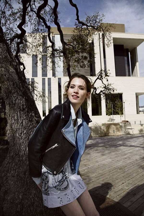 The graphic-print skirt: Fidelity chambray shirt, $160 through www.fidelitydenim.com. Mary Katrantzou for Current/Elliott skirt, $288 at Boboli in Vancouver (604-257-2300). Acne denim and leather jacket, $1,450 at Holt Renfrew. Shot at the Travis County Courthouse.Claudia Grassl/The Globe and Mail