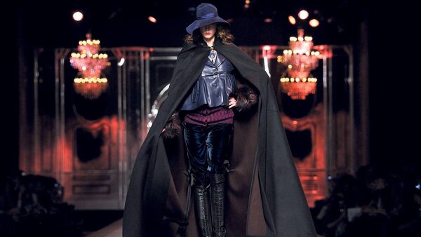 The ensuing collection, Galliano's swan song for the house, was inspired by the dandyism of English Romantic poets. It was classic Dior, rife with dramatic capes, tailored tweed and velvet jackets, jaunty knickerbockers and romantic sheer and ruffled chiffon evening gowns. Rich inky shades, velvets, leather, fur and cashmere offered a luxe edge, with over-the-knee boots echoing a belief that the feet of this house were firmly planted on the ground. At the end of the show, when the flamboyant Galliano would have customarily taken his dramatic bow, the talented Dior atelier team - about 50 of them in their white lab coats - emerged from backstage. It was one of the most moving displays in recent fashion memory, reminding all there of what should always be fashion's true priority.