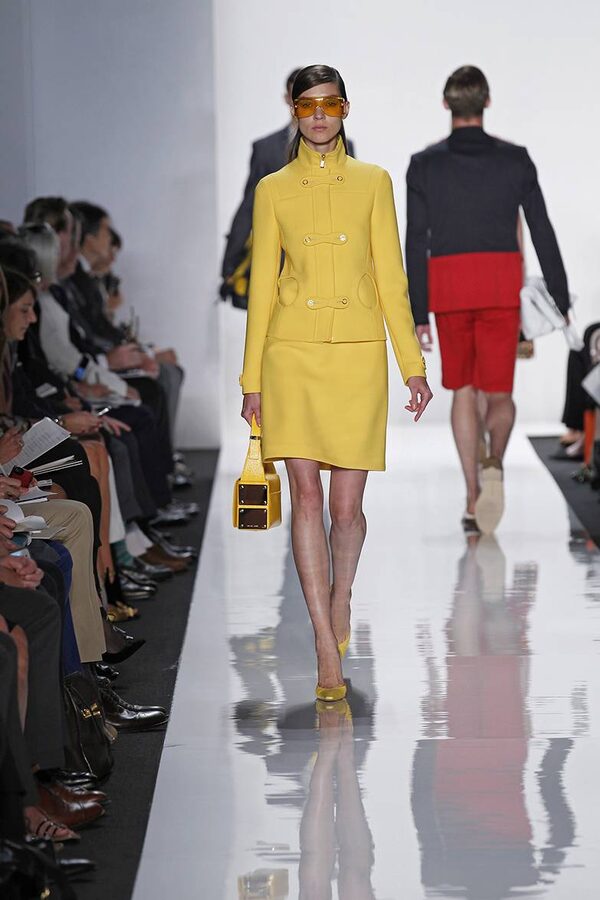 "I call this the front-row coat," Kors said at a press conference before his show, holding up a yellow double-faced leather trench. Like a lot of designers, he was stressing the importance of outerwear for spring, inspired in part by frontrow fixtures such as Harper's Bazaar editor Joanna Hillman, who has never met a jacket she couldn't drape over her shoulders. Joseph Altuzarra offered the ne plus ultra of the genre in tailored outerwear that was sliced and diced, not a single one worn with sleeves on.