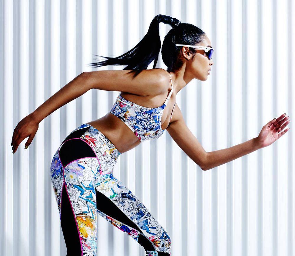 underneath. Lucas Hugh Ion sport bra, $140 US, and Prism Shard leggings, $374