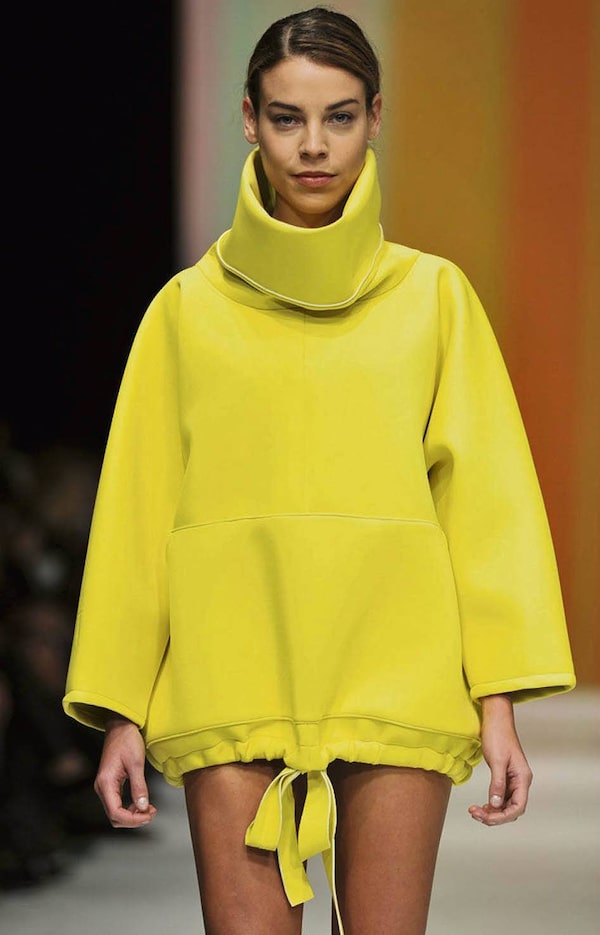 NEOPRENE Heavy-duty yet malleable, the hot-to-trot fabric was used to best effect on the bright coats on show at Joe Fresh (pictured).