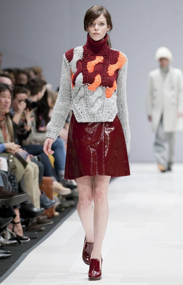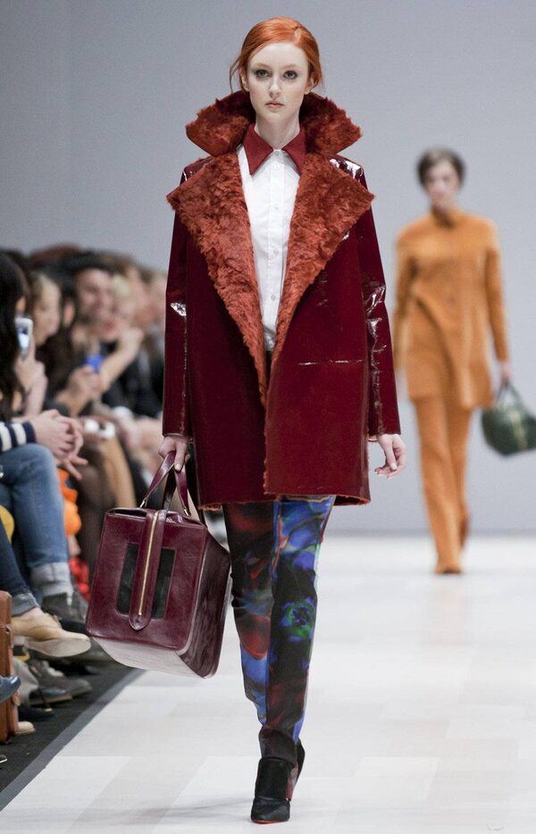 Accessories included big, woolly tuques in bright hues, furry details such as stoles and structured purses both big and small (with one burgundy bag so large it could double as a cat carrier).