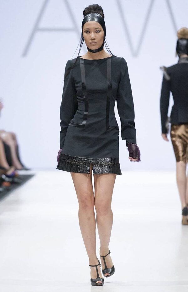 Fong’s collection for VAWK, however, was designed for a different kind of working woman, specifically, a ‘Sci-Fi Samurai’ unafraid to don leather headgear, statement coats and flashy gowns to get the job done.