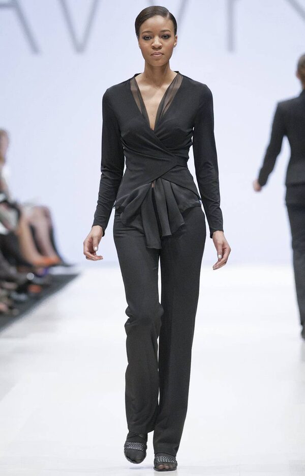 Earlier in the day, VAWK designer Sunny Fong also tried his hand at more-accessible fashion, introducing his label’s new sister collection called VAWKKIN, featuring tailored, office-ready separates worn on the runway by real women the designer cast using an open call.