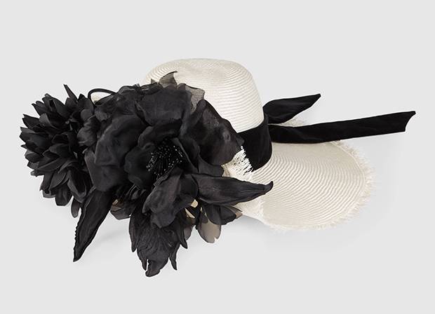 Straw hat with silk flowers, $1,735 at Gucci (www.gucci.com)