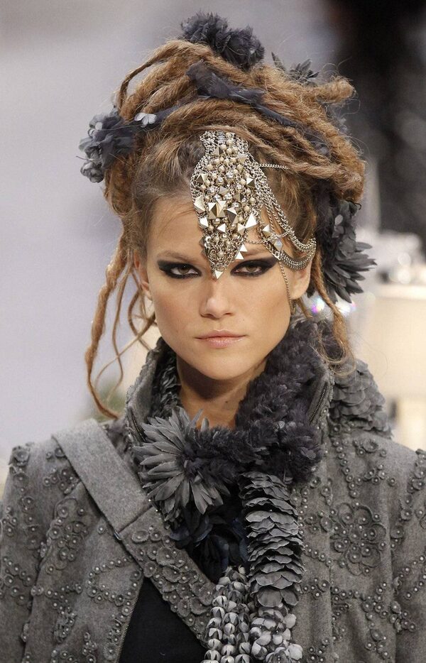 Luxury is being able to combine faux dreadlock hair with an intricately beaded, appliquéd jacket.Benoit Tessier / Reuters