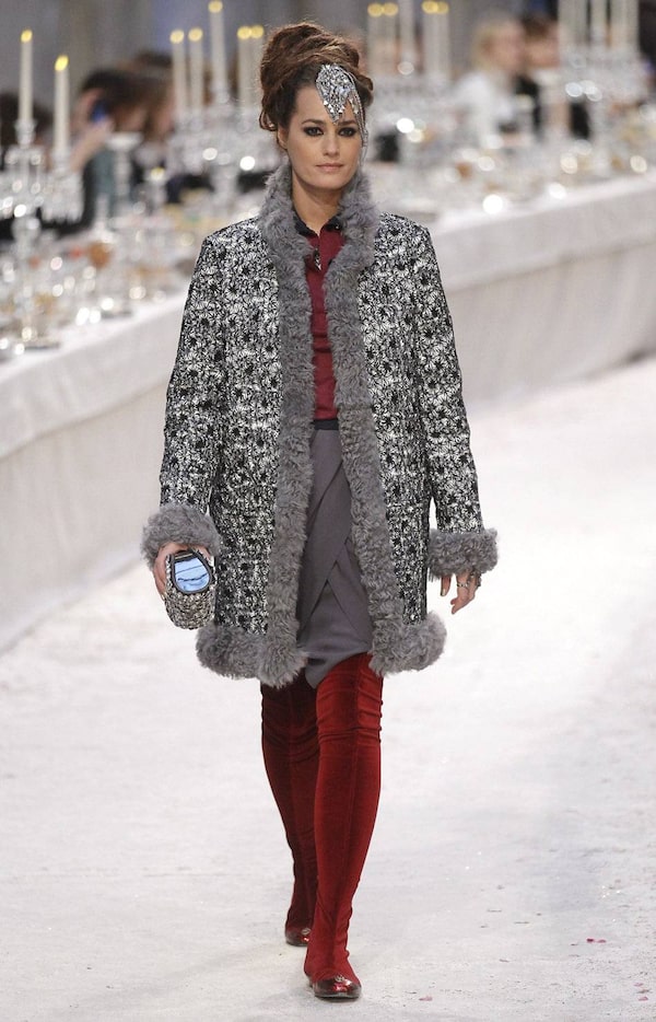 There is something particularly decadent about this all ivory everything statement. Better still, the metal-embellished, fingerless gloves. Note the jacket tossed over the outfit. Such insouciant chic!Remy de la Mauviniere / AP