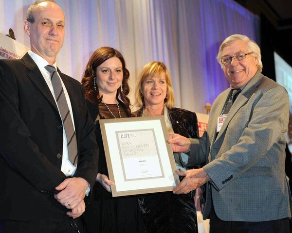Alain Gravel with Marie-Maude Denis receiving the Tara Singh Hayter Memorial award from Madeline Ziniak and Patrick Gossage at the Canadian Journalists for Free Expression Gala.Tom Sandler/The Globe and Mail