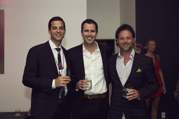 Josh Higgens,left, wins for fiercest man-purse of the night alongside Tara Leydon and Chris Binet.Jenna Marie Wakani/The Globe and Mail