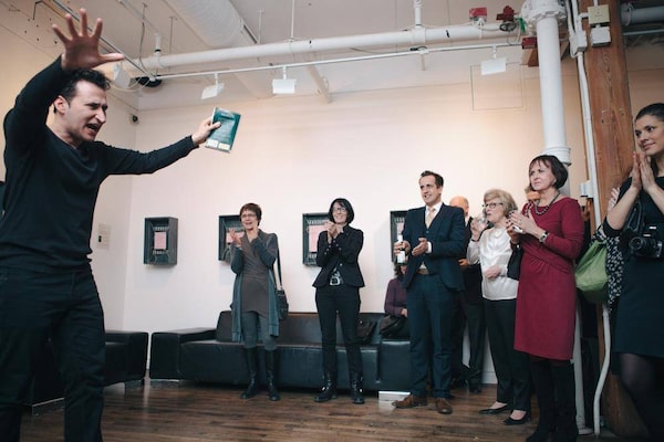 Raoul Bhaneja (actor, musician and NTS Acting 1996 ) performing scenes from Hamlet before the NTS guests at the Spoke Club.National Theatre School of Canada