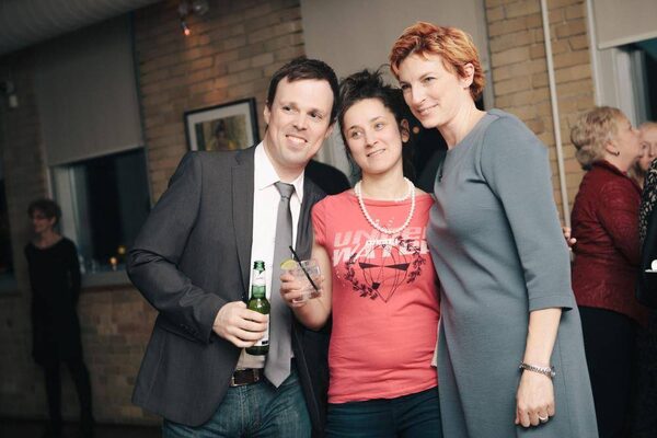 Centre: Martha Hancock (Director, Corporate Citizenship at Manulife Financial) and Hussain Amarshi (CEO, Mongrel Media).National Theatre School of Canada
