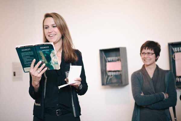 Caroline Mulroney Lapham (National Theatre School board member and Independent consultant, Financial services) reading Hamlet and Ann-Marie MacDonald (actress, playwright, author and 1980 NTS Acting graduate).National Theatre School of Canada