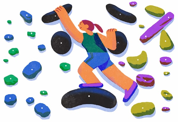 Well, I know how: My 21-year-old son told me he had a guest pass to a new climbing centre, affectionately nicknamed Rocky. “Come with me, Mom. You’ve got to try this!” It’s a measure of how much I adore my kids, and how flattered a parent is if they want to hang out with you, that I went.