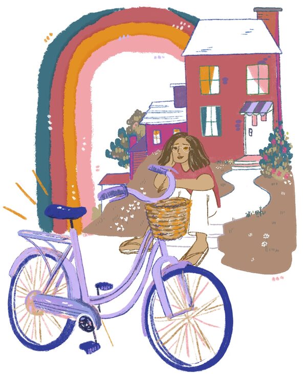 The vintage frame was the watercolour mauve of the lilacs that grew in my grandparents’ yard. Its step-through design could manage all manner of raiment, from sweatpants to sundresses. The brown wicker basket was empty; my mind quickly filled it with fresh-picked field flowers, a notebook, a thick dog-eared novel passed friend-to-friend. I could picture my daughter, laughing – flawless – soaring through summer, her whole life ahead.