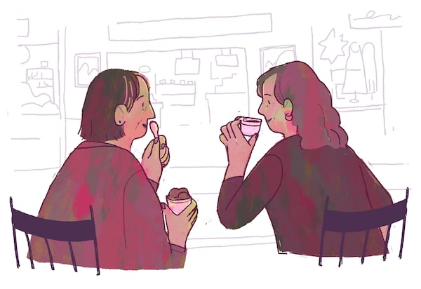 At the counter, Mum orders her standard – dark chocolate sorbetto. I study the menu board, searching for new flavours, wondering if I should order my own gelato. But I’ve never shared Mum’s passion for the dessert. A simple sample – salted caramel – and I’m good. I order an espresso.