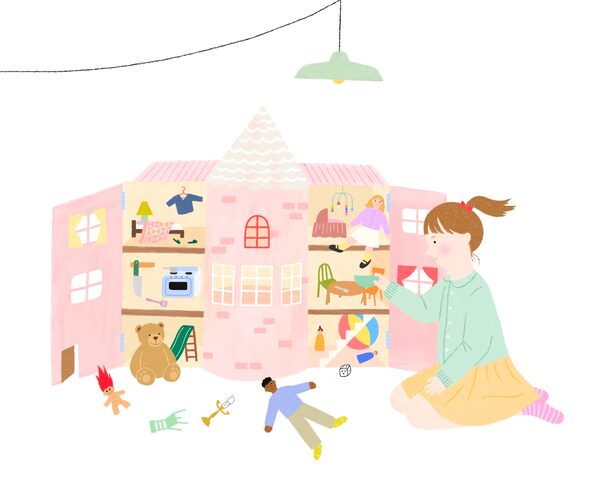 In the dollhouse lived a family: brunette father, blonde mother, brunette boy child, blonde baby girl. The baby had her own nursery, complete with cradle, change table and stroller. There was a mini dollhouse, an exact replica of the larger dollhouse, so toys could play with toys, I assumed. There was a playground with slides. Batteries operated the lights, giving a warm evening glow, and Brahms’s Lullaby played in the nursery. In the dollhouse, everything was perfect.