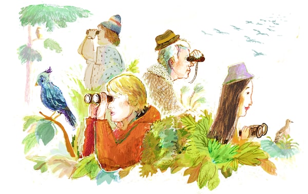My family and I often birded together, spending days or entire weekends in nature with our binoculars (or “bins,” as birders call them) in hand. We travelled to Point Pelee National Park and Rondeau Provincial Park to see the spring influx of warblers – a group of brightly coloured birds in yellows, blues and reds that weigh half an ounce and fly back from Central America each year. One of my aunts, who lives near Algonquin Provincial Park, took us there in search of chestnut-backed chickadees, the elusive spruce grouse, and Canada jays, who associate people with food and will swoop down if you call for them.