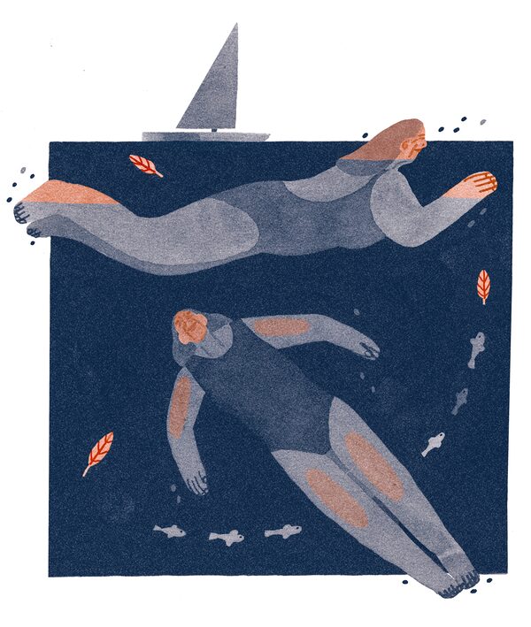 I have long loved swimming, though the fear of being seen as fat has dogged me. I am one of those female bodies poorly displayed in bathing suits. I know I am not alone. In fact, I believe that all women are inadequately served by bathing suit cutouts. I use the term cutout because the shape of bathing suits reminds me of the cutouts for the paper dollies I once played with, my child self carefully applying outfits to models whose dimensions I could admire but had never located within my own family. In my younger years, I concocted a variety of cover-ups to conceal my body. In this last stage of my life, however, while those feelings may run high, more often than not, I set the battle aside, indulging in my right to swim, released from the weight that seems unfit on the shore.