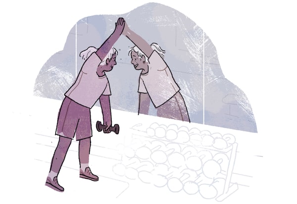 At the gym, I soon realized I wasn’t competing to win the 100-metre dash against a group of gazelles with wings for feet – as I had in my youth. Instead, I was competing with myself. I felt immense pride in surpassing the person I had been the previous week, who could only lift eight-pound dumbbells. Going to the gym triggered a domino effect: I began eating healthier, which, for the first time in my life, came easily to me. I treated my body with the respect it deserved, resisting the temptation of fast food.