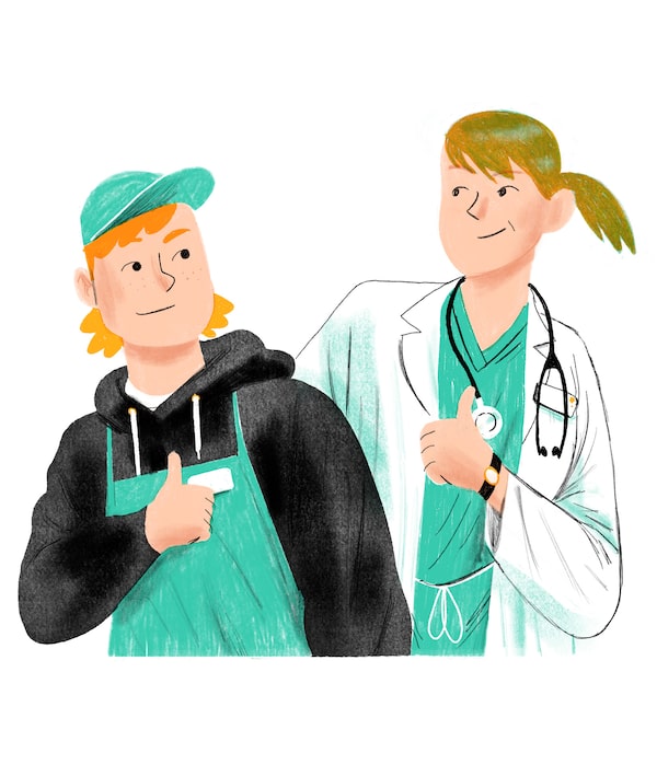 He likes to remind me of this shared status when we leave the house in the morning, his three sisters in pyjamas and his dad Zooming in front of a green screen. Jacob wears an oversized red T-shirt over a black hoodie, with Island Farm Market and a wide-eyed rooster emblazoned across the back. I’m wearing heels and a navy blazer. I unlock the car for the short drive to the children’s hospital, where I work as a psychiatry resident. “Hey Mom!” Jacob calls as he slouches down the driveway, backpack over one shoulder. “Have a good day doing your essential work!”