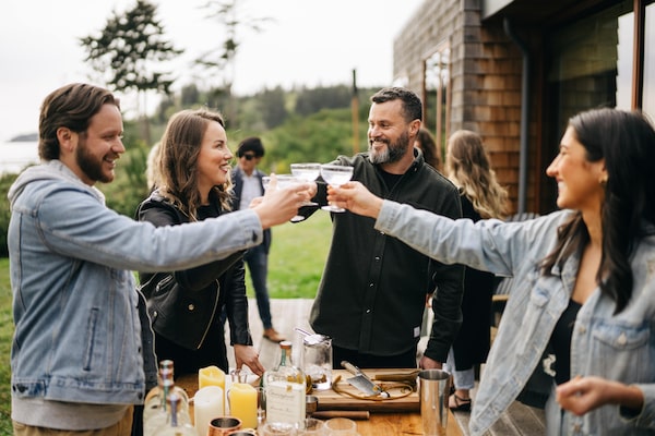 Sheringham Distillery owners Alayne and Jason MacIsaac, second and third from left. The distillery's Seaside Gin is now available at the LCBO.Sheringham/Supplied