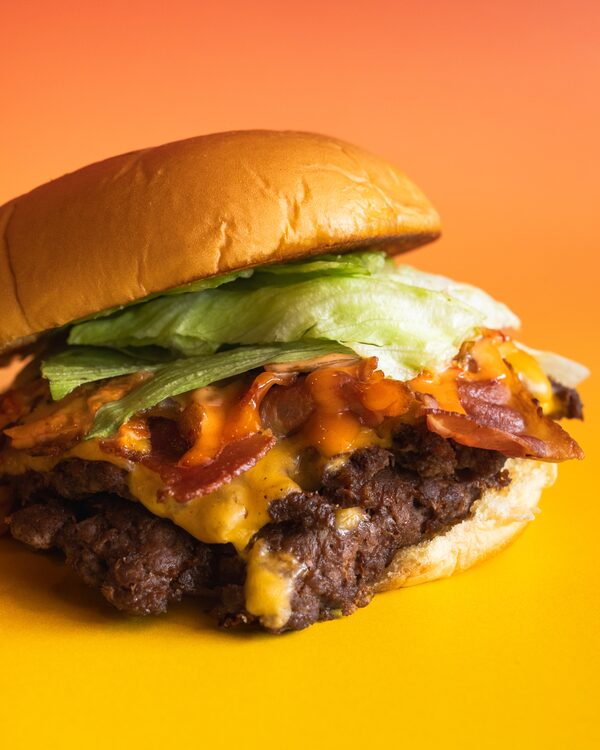 Justin Cheung’s Kimchi Bacon Smash Burger.Richard Won/Supplied