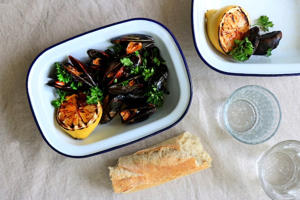 Grilled Mussels with Garlic, Butter & Lemon. Choose a reputable fishmonger or grocery store with a good seafood section; mussels should be wet, shiny and clean-smelling, and be mostly tightly closed.Julie Van Rosendaal/The Globe and Mail