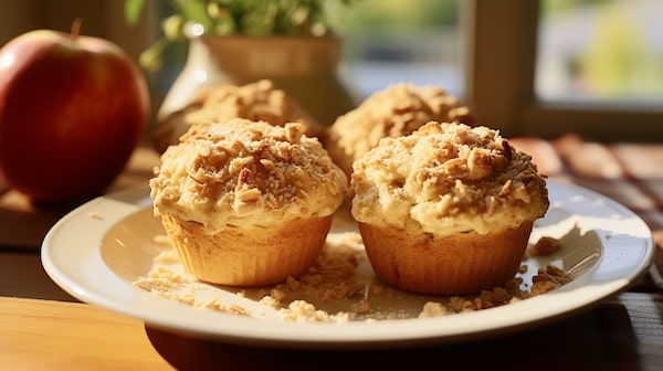 In this AI-generated photo of the muffins, there's a crumble topping that doesn't appear in the recipe. AI-GENERATED IMAGE VIA 6 SEEDS AI