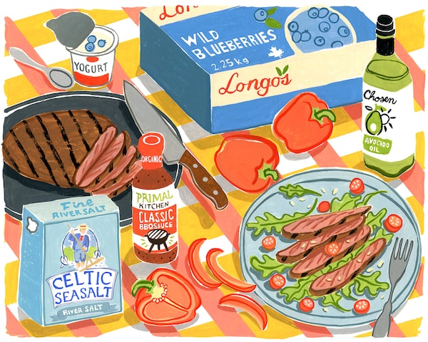 Grocery shopping for his wife and two children (9 and 11), the 45-year-old prioritizes unprocessed foods. His cart often has yogurt, berries, eggs, both olive and avocado oil, and protein such as beef, chicken and fish.