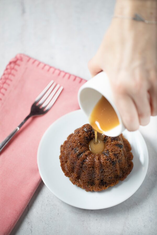 Caramel sauce being added to the spiced raisin cake.Nicole Gray/The Globe and Mail
