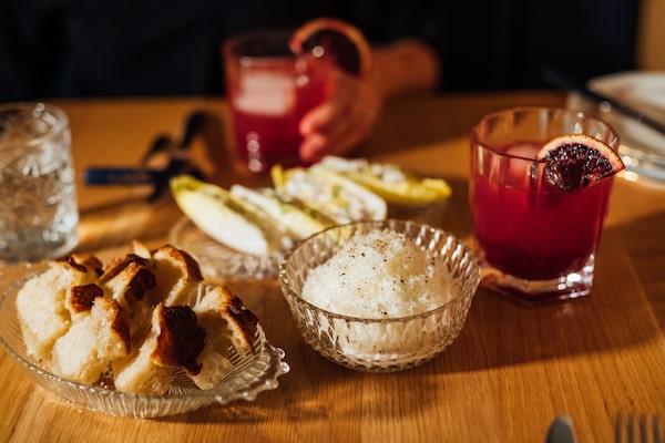 Sabayon in Montreal offers aperos like the smoked mackerel rillette served in endive leaves, whipped ricotta with honey and black pepper with grilled focaccia and a festive negroni and orange amère (non-alcoholic option) cocktail.Two Food Photographers/The Globe and Mail