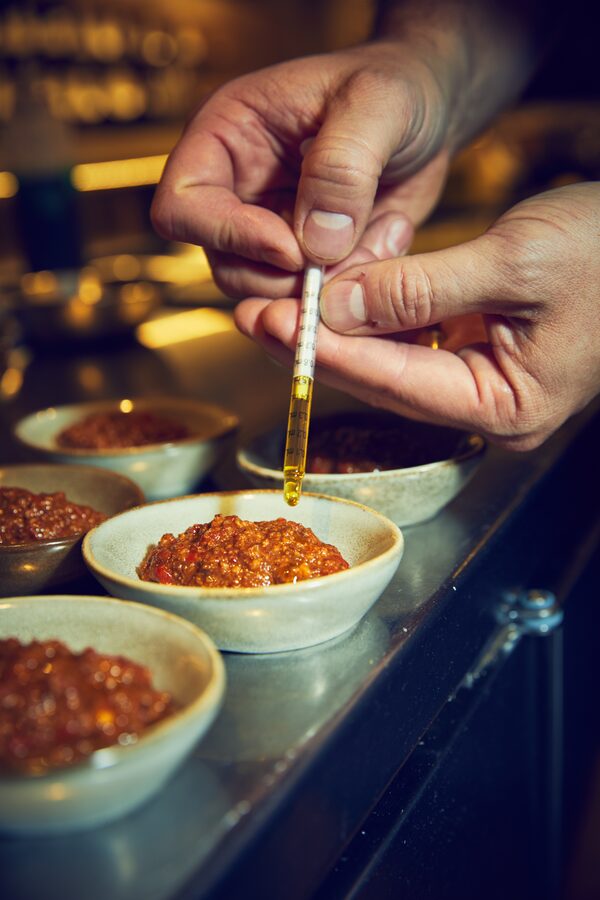 Infusing the muhamarra with hybrid CDB/THC oil.DANIEL EHRENWORTH/The Globe and Mail