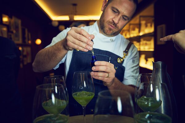 As we sip an aromatic palate-opening green juice-and-THC cocktail even the chef admits that the main challenge for high-minded home cooks will be producing a consistent result and keeping an eye on consumption. In between courses, he affably pops over to offer insight on the dish as well as to remind us to start low and go slow.