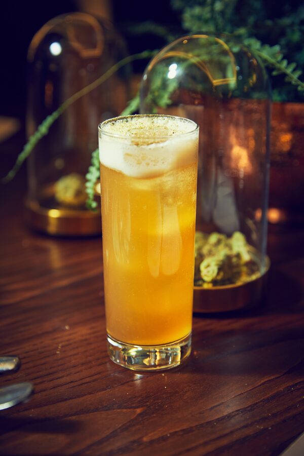 If you want to infuse the drink, sprinkle Mango Haze on top through a bar strainer.