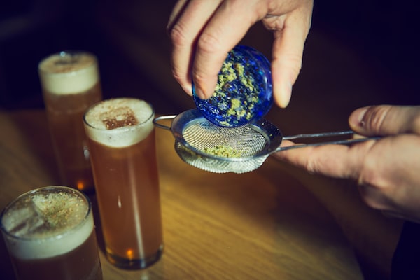 Craig Harding adds hybrid CDB/THC oil to the Be Green cocktail.DANIEL EHRENWORTH/The Globe and Mail