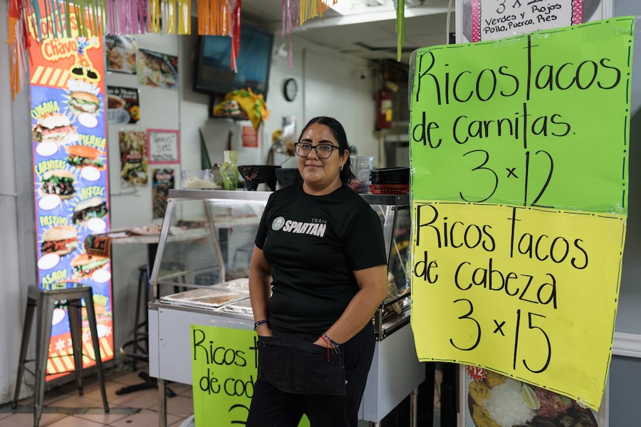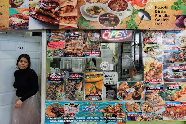 Paula Resendiz, who moved to Canada several months ago, sells tacos at Tortas el Chavo, a Mexican sandwich shop. Popular items include the meat-heavy torta cubana and tacos de cabeza – beef cheek tacos. Resendiz makes this fatty, flavourful delicacy by slicing the meat directly off a cow’s skull.