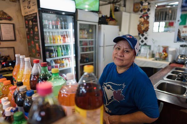 Martha Quintero’s shop, which sells fresh juices and other beverages, is among the oldest at the plaza.