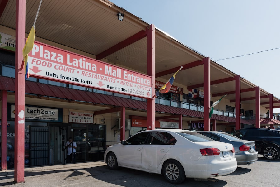 At the end of a long row of low-slung auto body shops in an industrial Toronto neighbourhood lies a sprawling, humble-looking red mall. Inside the unassuming exterior, there’s a maze of narrow corridors filled with Spanish-language chatter and tinny sound systems playing Mexican norteno and Puerto Rican salsa that lead you to a bustling food court. It’s packed with bright signage, proudly displayed national flags and the smells of dishes that hail from all corners of Latin America. This is Plaza Latina, which has been the heartbeat of the city’s Latin American community for 29 years.