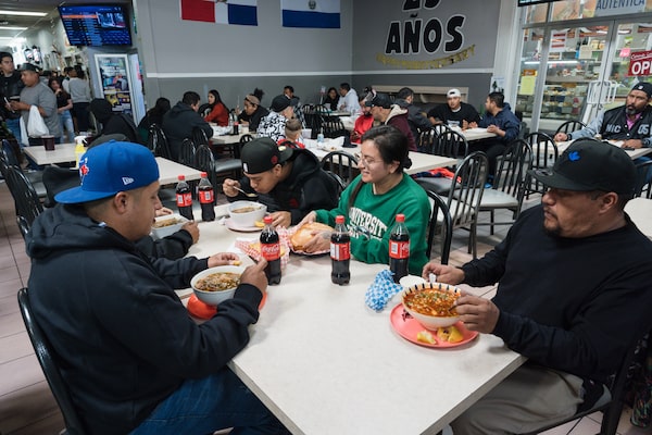 A family from Mexico enjoys lunch at Toronto's Plaza Latina, which they say they visit at least once a week.Photography by Yader Guzman/The Globe and Mail