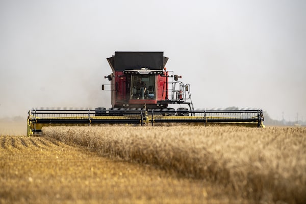 Canada is one of the world’s top wheat exporters and the number one exporter of durum wheat, a variety commonly used to make pasta. Wheat is harvested on a farm near Saskatoon, Sask., in August, 2023.Liam Richards/The Globe and Mail