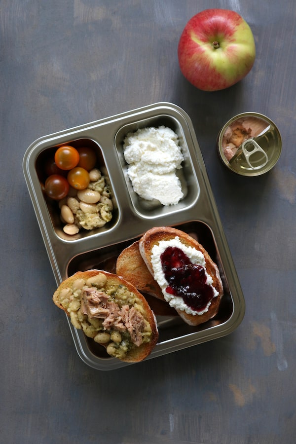 Simple, familiar, and teen-friendly, toast is an ideal vehicle for all kinds of tasty things, both sweet and savoury. Toast made in the morning will stay crisp until you load it up to eat; pack it dry, buttered or drizzled or brushed with olive oil and sprinkled with salt. At lunchtime, spread and pile on your favourite things as you eat.