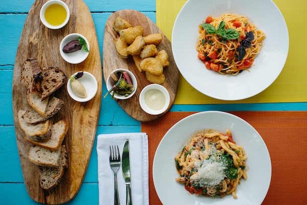 A Bad Dog Bread board, zucchini fritters, spaghetti and casarecce are pictured at Orto Artisan Pasta in North Vancouver.BEN NELMS/The Globe and Mail