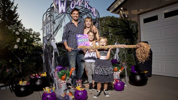 Peter Facinelli, whose home was selected in a nationwide search for Willy Wonka's Ultimate Halloween House, is seen with his family at home in Santa Ynez, California.Casey Rodgers / AP Images for Wonka