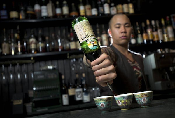It's a hopping night at Peoples Eatery in Toronto's Chinatown – funk on the stereo, snacks on every table. Co-owner/bar manager Matt See sets some Chinese teacups on the marble bar top, pours a stream of Brio-hued liqueur into them, and slides the cups toward a few of his front-row patrons, myself included. The shot goes down like medicine, as herbaceous as a newfangled GNC supplement, so bitter that my body stiffens as if in expectation of poison. Then an incredibly soothing warmth kicks in.