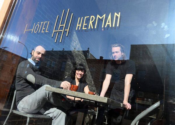 From left, co-owners Dominic Goyet and Ariane Lacombe, and chef Marc-Alexandre Mercier, of Hotel Herman in Montreal.Christinne Muschi/The Globe and Mail