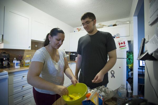 Laszlo Sarkozi helps his mother Ilona Orsos prepare French Toast athe their home in Toronto on Sunday October 25, 2015.Kevin Van Paassen/The Globe and Mail