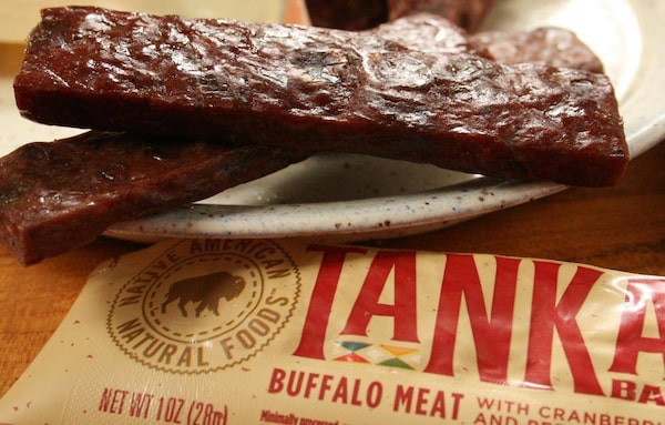 Based on ancestral recipes, Tanka snacks are made from grassland-raised buffalo, cranberries and dried apples. Company founders, Karlene Hunter and Mark Tilsen joined forces with Indian Land Tenure Foundation in 2013 to create the Tanka Fund. The goal is to ensure the buffalo returns to its central place in the culture, diet and economy; they aim to purchase one million acres of grassland by 2022. The numbers of buffalo are slowly rising and with the Tanka Fund's help, the numbers keeps growing. As Hunter says, "One bar at a time!"