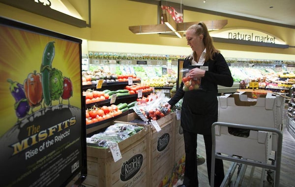 Nicole Kaarsemaker of Safeway puts "Misfits" vegetables on display in Calgary, Alberta, November 13, 2014. The vegetables are bundled up to sell because of their odd shape or colour, but they are just as fresh as other local vegetables.Todd Korol/The Globe and Mail