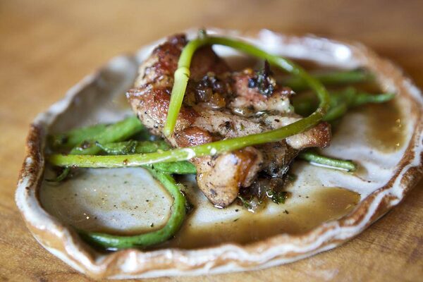 Eigensinn Farm Pork Steak with Green beans cooked with speck and garlic scape at Haisai restaurant in Singhampton on Sept. 6, 2013.Deborah Baic/The Globe and Mail