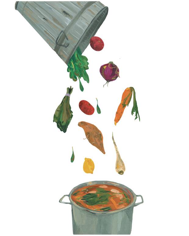 In less than an hour, she had converted 10 kilograms of "below seconds" tomatoes, 10 onions, 15 carrots and a whole head of celery – all of which would have wound up in landfills – into a giant pot of bubbling soup.